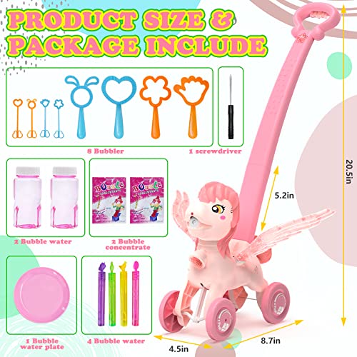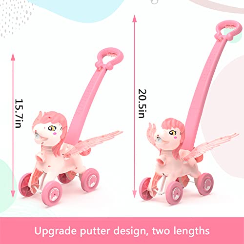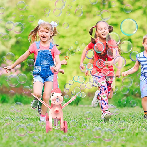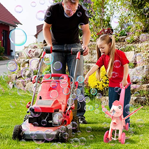 Bubble Machine Blower Lawn Mower for Kids,Bubbles for Toddlers 1-3, Summer Outdoor Push Toy with Music Lights for Garden,Park,Lawn Game as Birthday Unicorn Gifts for Preschool Baby Girls Boys(Pink)