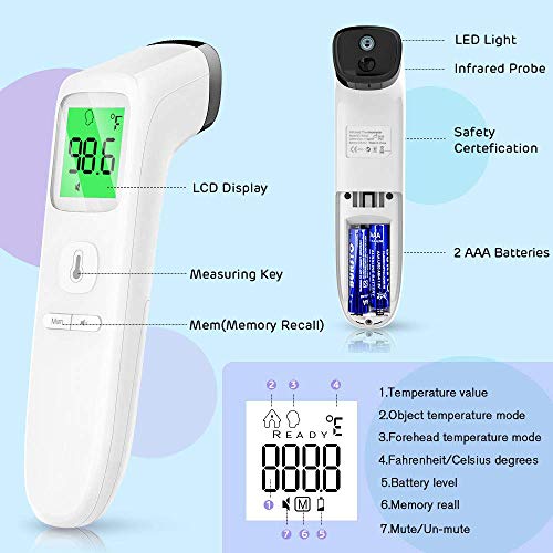 - Multi-mode Thermometer: The digital thermometer is designed for all ages, adults, infants, and elders. It not only supports the forehead function but is able to take room/object temperature.