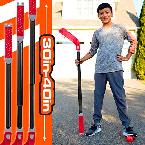 - ADJUSTABLE HOCKEY STICK: The NERF hockey stick adjusts from 30″ to 40″ so kids of all ages and sizes can have a stick that fits them as they continue to grow and play