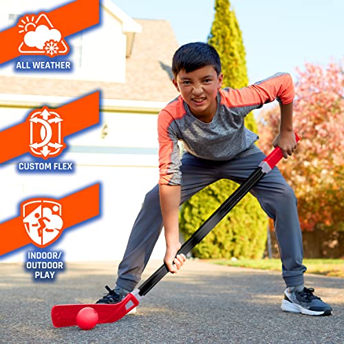 - INDOOR & OUTDOOR HOCKEY SET: The Flexplay hockey stick and ball set is designed for indoor and outdoor play, so kids can take the game on the go and play rain or shine!
