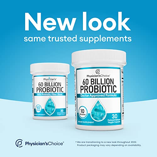 Details: Probiotics with 10 strains and 60 Billion CFU. An acidophilus based probiotic with organic prebiotic for adults. We guarantee our probiotic formula contains 60 billion CFU’s, which tops the leading 50 billion CFU probiotics on the market. Read probiotic labels carefully before buying. Many contain only 20 billion CfU’s or lower and claim it’s equivalent to the higher CFU products. Our probiotic supplement guarantees 60 Billion CFU per serving. Physician’s Choice probiotic is excellent for gut health, gas relief, bloating and constipation relief. Our prebiotics and probiotics give digestive support to your stomach, gut flora, & overall gut health. Great to use as a women’s probiotic or men’s probiotic. Our probiotic contains a proprietary natural delivery system with a trademarked and patented shelf-stable bottle. . Third-Party Tested: Our probiotics are third-party tested for potency and purity, non-GMO. Each probiotic capsule contains acidophilus, lactobacillus, bifidobacterium, paracasei, plantarum, and an organic prebiotic fiber blend. No refrigeration needed. Our probiotic is a shelf-stable non-refrigerated probiotic that comes in a patented shelf stable bottle. We believe in using clinical research to effectively create the ultimate probiotic for women and men with natural probiotic strains. Made in the USA: Manufactured in the USA using domestic and imported ingredients. Veggie Capsules: 30 delayed-release vegetable and vegan probiotic capsules.